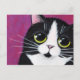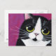 Tuxedo Kitty Cat On Pink Postcard