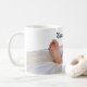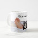 Black and white tuxedo cat shares the bed with owner and reminds him it's time to rise and shine, get up and feed him cat lovers cute mug or cu[