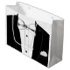 Celebrate black tie events, gifts for him and special occasions with this tuxedo designed gift bag.