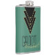 A great gift idea for the groom, this design features an art deco-inspired trio of triangles bordered in a gold hue and studded with dots. Add the name of the groom in place of the sample text. You can change the background colour of this flask using the customise it option and selecting another colour.