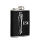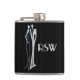 Flask featuring a silvery Art Deco style design of an elegant couple in formal attire on a black pinstriped background + custom text fields for monogram, date and a personal message. Great gift for your wedding party!