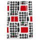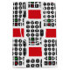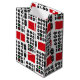 Television remote pattern on a red background.