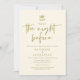 Modern Romantic Calligraphy, yellow gold Scheme, mistletoe with wedding bells, Wedding Rehearsal Dinner invitation card ('twas the night before). It is perfect for your wedding rehearsal dinner celebration party, before your best day.