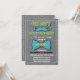 Super cute fabric inspired, tweed little man baby shower invitations with blue tweed bow tie and moustache, fun typography with green tweed fonts. Grey tweed background with stitching. Hand drawn illustration by McBooboo.