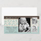 Sweet blue and ivory bird damask print with brown and blue contrast baby announcement card.