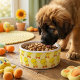 I absolutely love this product! I was a little concerned prior to buying it, but I was blown away by the quality of the item. The bowl is sturdy and arrived clean without any damage. The printing was crisp and clean and looks Better than I hoped! My dogs immediately knew these were for them and get very excited to pose with their new bowls! Definitely recommend and will purchase more in the future! The printing is crisp and well done. It looks absolutely beautiful on the bowl, and I can tell that it’s going to hold up well over time.