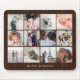 This rustic, trendy mouse pad features twelve of your favourite personal photos, with room for your name or a message. The background is a brown wood look.