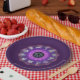 Symbols of the Twelve Tribes of Israel: Reuben, Simeon, Levi, Judah, Dan, Naphtali, Gad, Asher, Issachar, Zebulon, Joseph and Benjamin. The tribal symbols are arranged on a circular fractal image of purple tones.