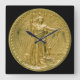 Twenty Dollar Gold Piece Liberty Sculpture 1907 Square Wall Clock