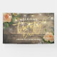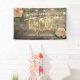 21st Birthday Party Decor Welcome Banner Templates - Faux Gold Foil Script with Peach White Roses Floral and String Lights on Rustic Wood Background.