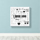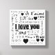 Twenty-two Ways to Say I Love You Black and White Canvas Wall Art. Purchase matching pillow cases, duvet, mug, drink coasters and throw pillow. Makes a great gift for a couple or wedding.