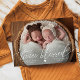 Simple and minimalistic birth announcement card featuring hand lettered typography that says "twice blessed." This is a birth announcement card for twins! Add your photos, birth stats, and a message!