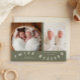 Whimsical birth announcement card featuring typography text that says "twice blessed" at the bottom with two photos on the front. You can add a 3rd picture on the back along with the birth stats and message. The background is sage green.