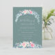 Spring Wedding watercolor painted flowers invitation with cursive handwriting script featuring Sugar, Ashwood, Custom Blue and Custom Teal customisable to your event specifics.