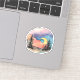 "Twilight Embrace: Celestial Serenity" is a sticker that portrays the quietude of twilight in a forested landscape. As day meets night, the sky is a canvas of soft purples and warm oranges, with the crescent moon cradling the transition. This sticker is a lovely accent for any space that cherishes the peaceful moments of dusk, from a tranquil bedroom to a reflective study area.