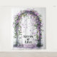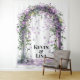 Step into a dreamscape where romance meets elegance. This customisable wedding backdrop showcases a stone archway entwined with lush greenery and vibrant purple florals, radiating a sense of timeless beauty. Suspended fairy lights lend a soft, magical glow—perfect for setting a whimsical tone during vows or photo moments. Personalise it with your own names or meaningful message to make your celebration uniquely yours. Ideal for ceremonies, receptions, or statement-making photo ops.