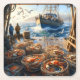 Twilight Harvest Fishermen Collecting Crabs Square Paper Coaster