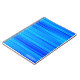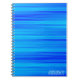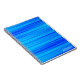 This spiral bound notebook features an abstract stripe design in various shades of blue.