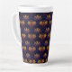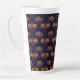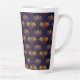 The product features a repeating ornate pattern inspired by a classic, baroque-style design. The central motif resembles a stylised fleur-de-lis or an elegant plume, rendered in vibrant gold, red, and orange hues with gradient effects. The background is a deep navy blue, creating a rich contrast that makes the design elements pop. The pattern has a luxurious and regal feel, with symmetrical detailing and flowing curves that give it a sophisticated and timeless appearance.