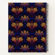 The product features a repeating ornate pattern inspired by a classic, baroque-style design. The central motif resembles a stylised fleur-de-lis or an elegant plume, rendered in vibrant gold, red, and orange hues with gradient effects. The background is a deep navy blue, creating a rich contrast that makes the design elements pop. The pattern has a luxurious and regal feel, with symmetrical detailing and flowing curves that give it a sophisticated and timeless appearance.