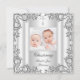 Twins Baby Girl Boy Christening Baptism Silver White Floral Metal Look Image Pretty Classy Template