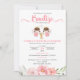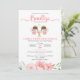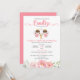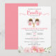 Celebra el Bautizo tus gemelas con esta invitacion con dos lindas angelitas y flores rosas.