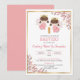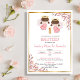 Announce the Baptism of your twin girls in style with this invitation. The design showcases cute baby angels and delicate pink leaves.