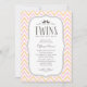 Twin baby shower invitations with a light pink and orange chevron stripe design. Customise the wording with your shower information. Preview what the finished invite will look like on screen before you order.