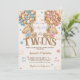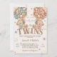 Twin Bears Boy Girl Stars & Balloons Baby Shower Invitation
