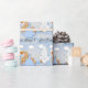This cute Twin Blonde Boys - Stork Baby Shower Wrapping Paper features a blue and white gradient background, clouds and a stork carrying twin baby boys. The baby boys have blonde hair and pacifiers in a blue blanket with white polka dots. Stylised text is It's Twin Boys. Perfect for wrapping Baby Shower Gifts. Choose your media and size of wrapping paper.