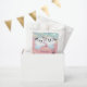 These charming Halloween-themed “thank you” favour bags are perfect for a baby shower celebrating twins. Each bag features two adorable ghosts with smiling faces and outstretched arms, set against a gradient background of pink to light orange, evoking a serene sunset or sunrise. The design is completed with playful bats flying around and a whimsical haunted house with happy pumpkins at the bottom. These favour bags combine the spooky fun of Halloween with a sweet and cheerful vibe, making them ideal for thanking your guests in a festive and memorable way.