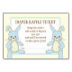 A terrific little diaper raffle ticket to insert into the envelope to include with your baby shower invitations. Invites guests to bring diapers for the mum-to-be to be entered into a prize raffle. Adorable twin bunnies decorate the front and back of the card - especially appropriate for a mum expecting twin boys!