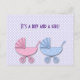 twin boy & girl polka dot stroller - gifts announcement postcard