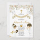 Twin Boy & Girl Praying White Flower First Holy Communion Gold Glitter Invitation