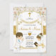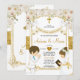 Twin Boy & Girl White Flower First Holy Communion Gold Glitter Invitation