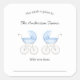 Embrace the cuteness of this baby baby shower bookplate for twin boys! Featuring two blue carriages and there's room for the gifter's name.