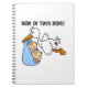 Adorable Mum of Twin Boys design featuring a stork carrying a blue blanket with baby boy twins and black text that reads "Mum of Twin Boys!". Mum of Twin Boys keepsake boxes, tiles, ornaments, notebooks, stickers, mugs, mousepads, tote bags, keychains, magnets, and more!