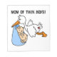 Adorable Mum of Twin Boys design featuring a stork carrying a blue blanket with baby boy twins and black text that reads "Mum of Twin Boys!". Mum of Twin Boys keepsake boxes, tiles, ornaments, notebooks, stickers, mugs, mousepads, tote bags, keychains, magnets, and more!