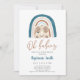 Twin Boys beige Boho Rainbow and Teddy Bear Baby shower invitation