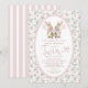 Twin Bunny Pink Roses Girl Baby Shower Invitation