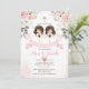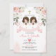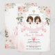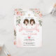 Twin Girl Pink Flowers 1st Holy Communion Gold Invitation