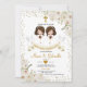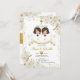 Twin Girl White Flower 1st Holy Communion Gold Invitation