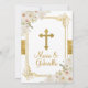 Twin Girl White Flower 1st Holy Communion Gold Glitter Invitation