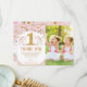 Twin Girls 1st Birthday Pink Floral Elephant Photo Thank You Card