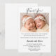 Celebrate the arrival of your twin baby girls with this sweet and elegant photo thank you card. Featuring a minimalist design, delicate floral headbands, and space to showcase your precious newborns, Amanda and Olivia. Perfect for sending heartfelt thanks to friends and family for their kind wishes, warm words, and thoughtful gifts. This personalised birth announcement is ideal for twin baby girls, new parents, and baby shower gratitude notes.