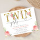 Twin girls blush pink gold floral baby shower invitation