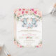 Personalise this chic tea party baby shower invitation with your baby shower details easily and quickly, simply press the customise it button to further re-arrange and format the style and placement of the text. This elegant invitation features beautiful watercolor blush pink roses, two adorable baby elephants and a blue teapot. Matching items available in store! (c) The Happy Cat Studio.