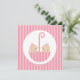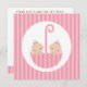 Stylish baby shower invitations featuring an adorable illustration of two babies inside an umbrella on a stripes background. Perfect design for your twins baby shower. Art © Cocoa Studio
