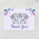 Customisable Thank You Card/Tag with Purple and Teal Twin Elephants with flowers, cute little peanuts with flowers and bows.