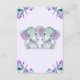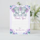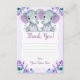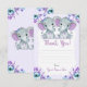 Customisable Floral Very Cute Watercolor Purple and Teal Flowers Rustic Twin Elephants Thank You card for Birthday, Baby Shower. Add your text, name etc!